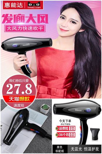【3秒吹干?】惠能达大功率家用吹风机【券后】27.8元!